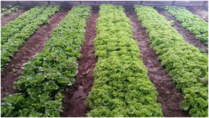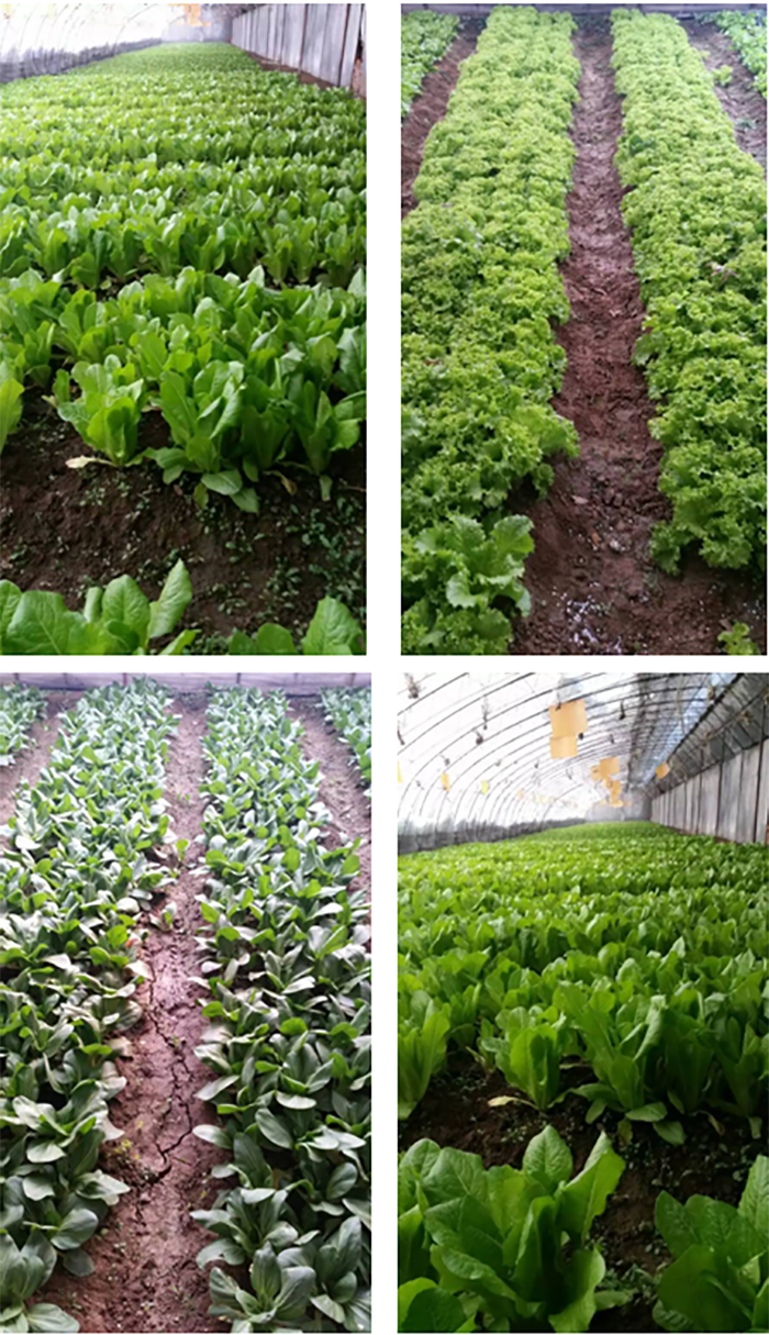 工人正在清理大棚上的積雪,新?lián)Q的棉被清潔起來(lái)要比以往方便大棚內(nèi)生機(jī)盎然,蔬菜青蔥挺立