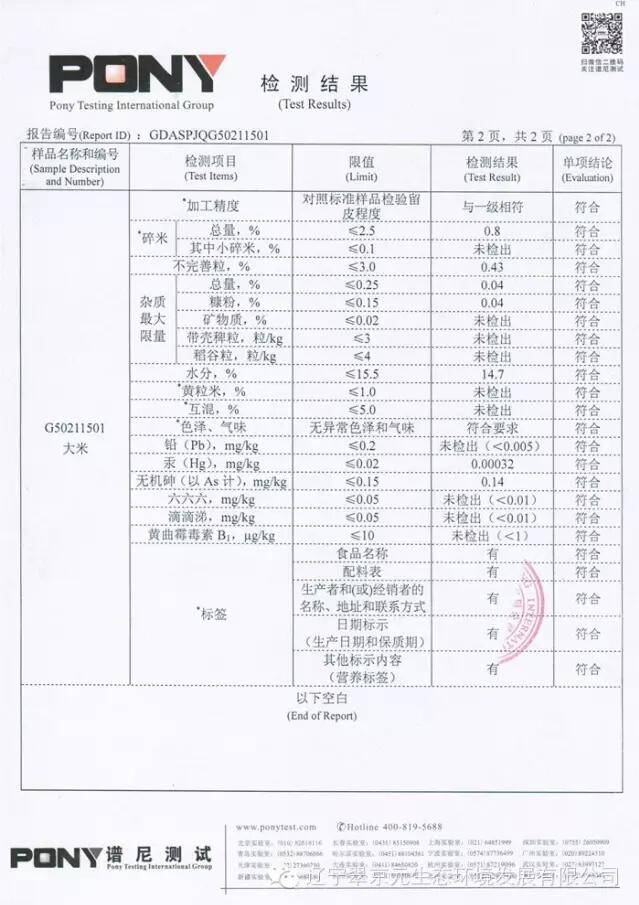 熱烈祝賀翠京元有機鴨稻米通過優(yōu)質(zhì)粳米一級標(biāo)準(zhǔn)檢測!