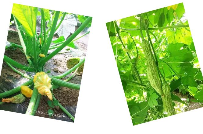 翠京元有機農(nóng)場:坐果的飛碟西葫蘆和即將成熟的苦瓜
