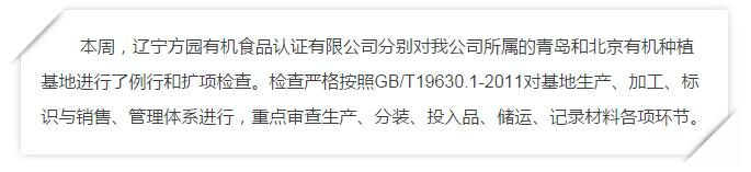 在此,感謝遼寧方園有機(jī)食品認(rèn)證有限公司對(duì)我們的監(jiān)督、檢查、指導(dǎo)和支持!