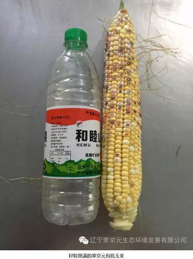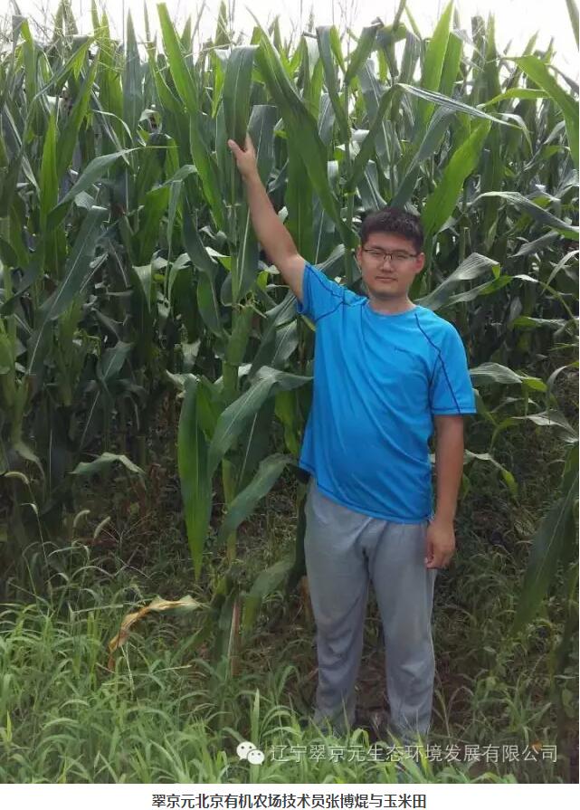 翠京元北京有農場地粘玉米,每畝底肥施用2瓶翠京元微生物菌劑和1000斤翠京元生態(tài)有機肥料,長勢健壯,結實率高,籽粒飽滿,不禿尖。