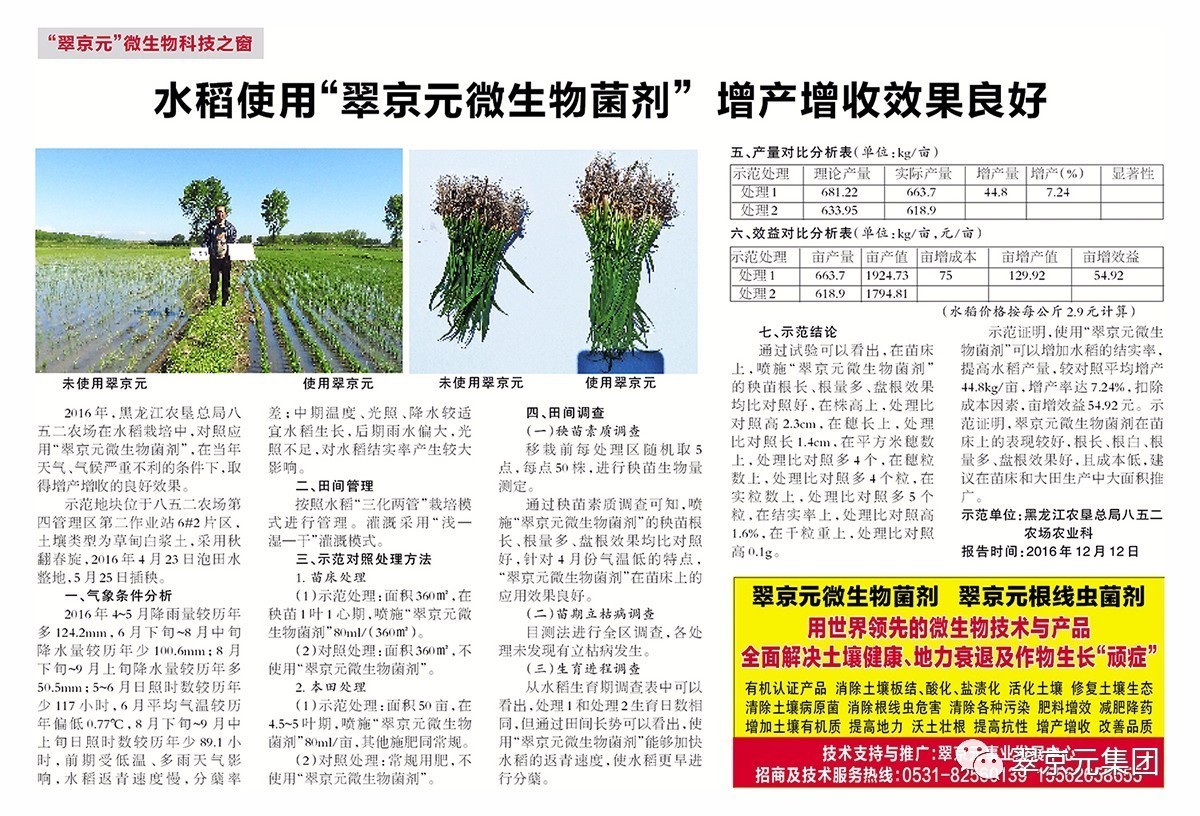 水稻使用“翠京元微生物菌劑”增產(chǎn)增收效果良