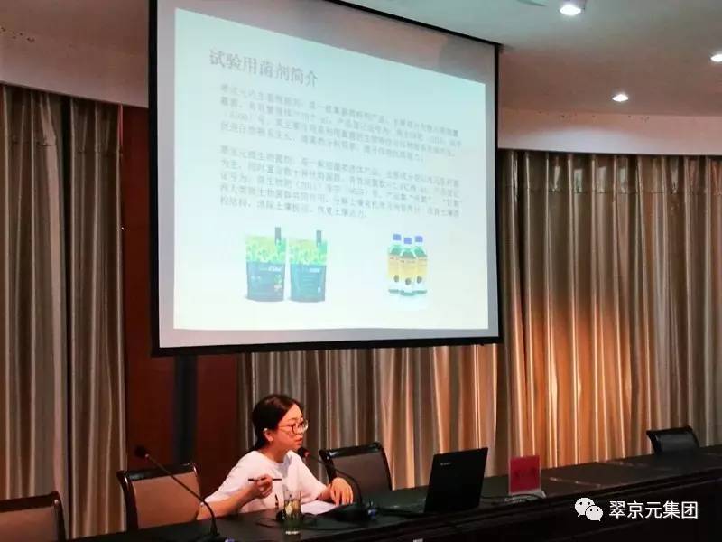 翠京元技術(shù)講師周樂(lè)霖介紹翠京元微生物菌劑在經(jīng)濟(jì)作物上的應(yīng)用效果 6月8日上午,與會(huì)代表前往南京蔬菜所種植試驗(yàn)基地翠京元微生物菌劑示范點(diǎn)進(jìn)行觀摩。試驗(yàn)用兩款微生物菌劑產(chǎn)品,分別為翠京元內(nèi)生菌根菌劑和翠京元微生物菌劑。