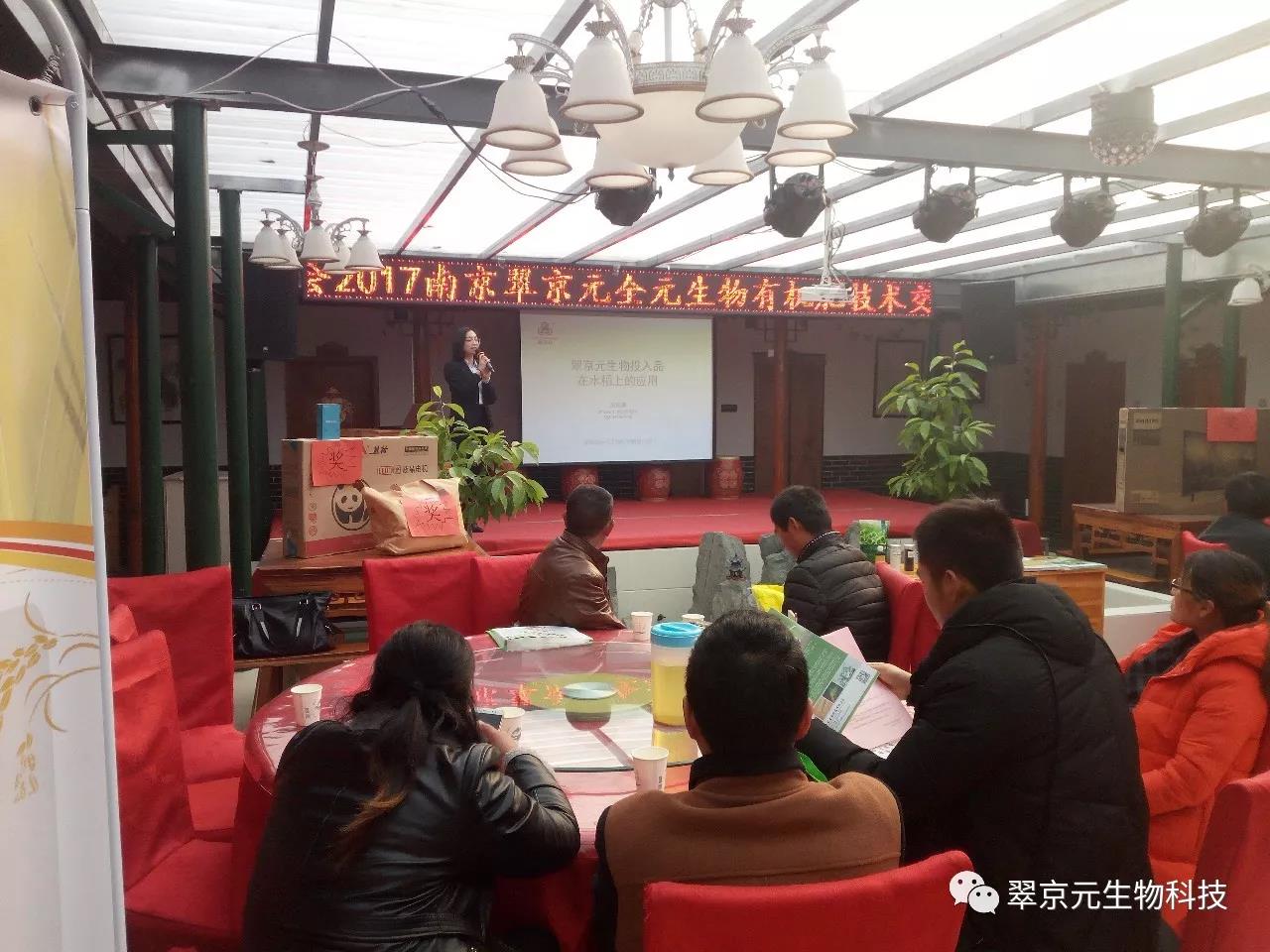 2月26日,2017翠京元全元生物有機(jī)肥技術(shù)交流培訓(xùn)會(huì)暨有機(jī)無機(jī)復(fù)混肥及育秧菌劑訂貨會(huì)在六合區(qū)隆重召開。約40余戶來自南京各地的水稻種植合作社及家庭農(nóng)場參加了本次活動(dòng),大家歡聚一堂,共同交流水稻種植過程中的相關(guān)技術(shù)。