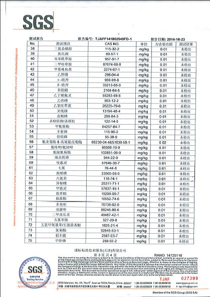 遼陽翠京元有機水稻種植基地小北河地塊去年畝產(chǎn)905斤,今年畝產(chǎn)1239斤;黃泥洼地塊去年畝產(chǎn)1102斤,今年畝產(chǎn)1257斤,兩地塊相比去年平均增產(chǎn)26%。稻谷按照國家有機標(biāo)準檢測了98項農(nóng)殘藥殘,結(jié)果均是未檢出。