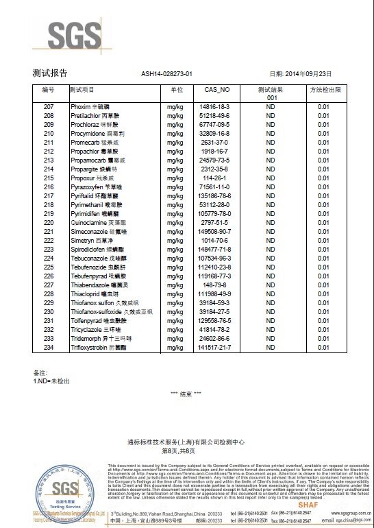 2014年9月12日,通標(biāo)標(biāo)準(zhǔn)技術(shù)服務(wù)(上海)有限公司檢測(cè)中心對(duì)東周豐源北京有機(jī)農(nóng)場(chǎng)的韭菜進(jìn)行了234項(xiàng)農(nóng)殘檢測(cè),9月23日出具了檢測(cè)報(bào)告,結(jié)果全部都是未檢出,沒有任何農(nóng)藥殘留。翠京元有機(jī)蔬果的生產(chǎn)嚴(yán)格執(zhí)行GB/T 19630-2011有機(jī)產(chǎn)品國(guó)家標(biāo)準(zhǔn),使用翠京元微生物菌劑和腐熟的農(nóng)家肥來替代化肥;不用農(nóng)藥、除草劑和化學(xué)殺蟲劑;不使用任何添加劑、色素和激素,不使用轉(zhuǎn)基因工程生物及其產(chǎn)物……而是遵循自然規(guī)律和生態(tài)學(xué)原理,采取一系列可持續(xù)發(fā)展的農(nóng)業(yè)技術(shù),協(xié)調(diào)種植平衡,維持農(nóng)業(yè)生態(tài)系統(tǒng)持續(xù)穩(wěn)定。