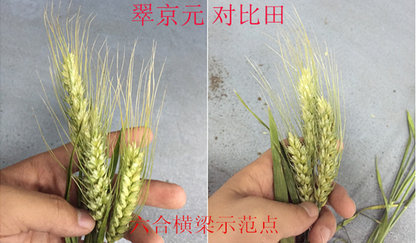 使用翠京元有機(jī)無(wú)機(jī)復(fù)混肥的水稻,與常規(guī)使用化肥的田塊相比,具有植株矮壯(抗倒伏能力強(qiáng))、穗型更大(穗粒數(shù)多)、葉子更挺拔(植株更健康)、根系發(fā)白(抗早衰)等對(duì)比效果,表明使用翠京元有機(jī)無(wú)機(jī)復(fù)混肥效果明顯。