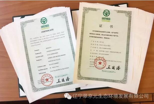 喜訊:翠京元喜獲綠色食品認(rèn)證!