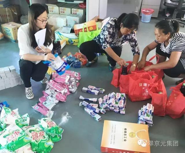 工會委員在分裝楊鎮(zhèn)總工會職工福利品